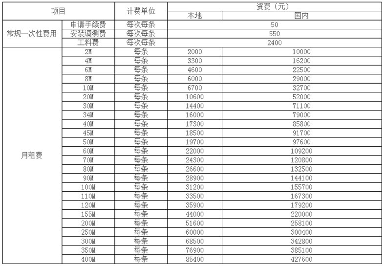 2、接入段工程费根据具体接入情况确定,参考收费为13000元
