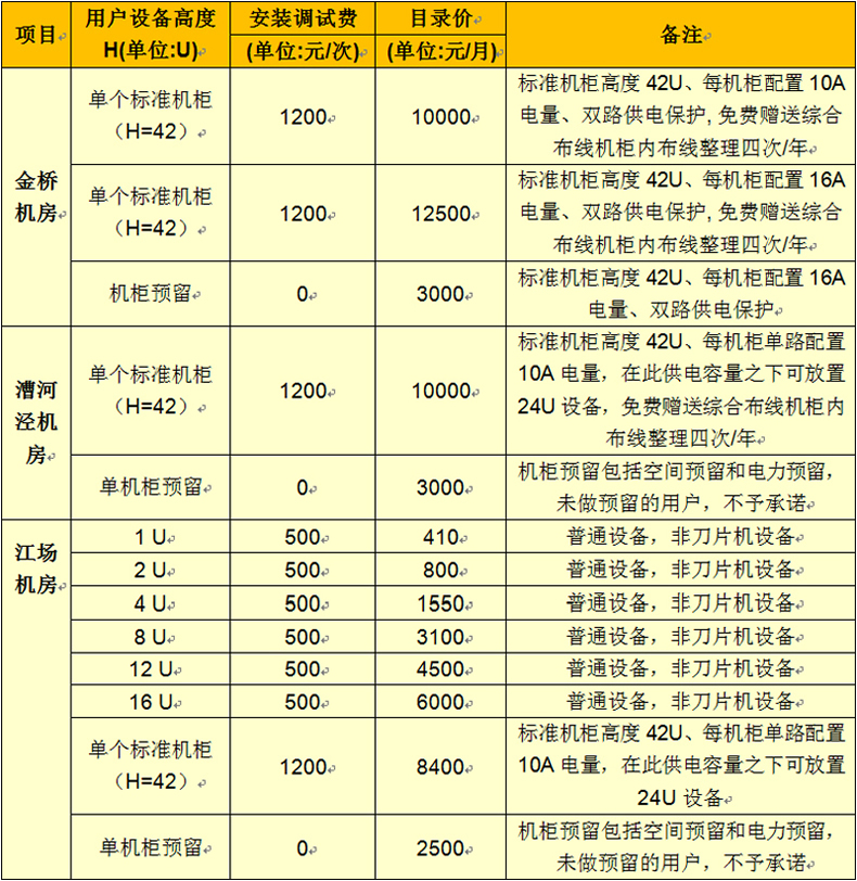 1、如需按包房面积报价,请联系IDC运营中心确认报价,并在业务支撑系统(BSS)受理确认。
