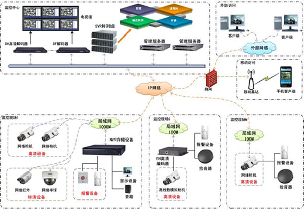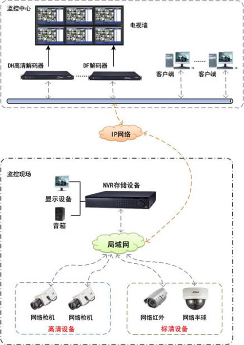 高清监控系统主要由:前端图像采集编码、高清传输、高清存储、高清解码显示、扩展应用等。