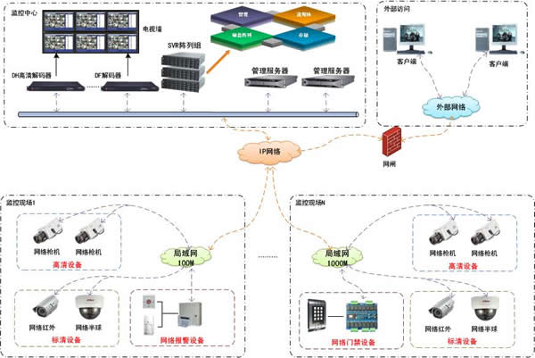支持提供高清图像,视频数据的存储,可采用NVR、IPSAN、SVR等设备实现。