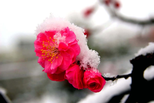 梅是“花中四君子”之首,它凌寒傲雪,独自装点冬日的荒凉。它的这种精神受到人们的敬仰,骚客文人爱梅,写梅,留下了很多动人的咏梅篇章。如陆游的“零落成泥碾作尘,只有香如故”;王冕的“不要人夸好颜色,只留清气满乾坤”,王安石的“遥知不是雪,为有暗香来”等,都很脍炙人口。但若说千古咏梅绝唱,则毫无疑问的是林逋的这首《山园小梅》。