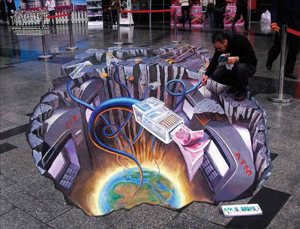 在一些科班出身的绘画人眼里,3D地画并非正统的艺术形式,但在齐兴华看来,其强烈的现场感和冲击效果,足以令每一个站在作品前的人震撼。他认定:“我的梦想就是立体的!”他还希望通过对颜料、画布等工艺的革新,使3D地画作品由易逝变为持久,甚至走进博物馆,值得更多人收藏。